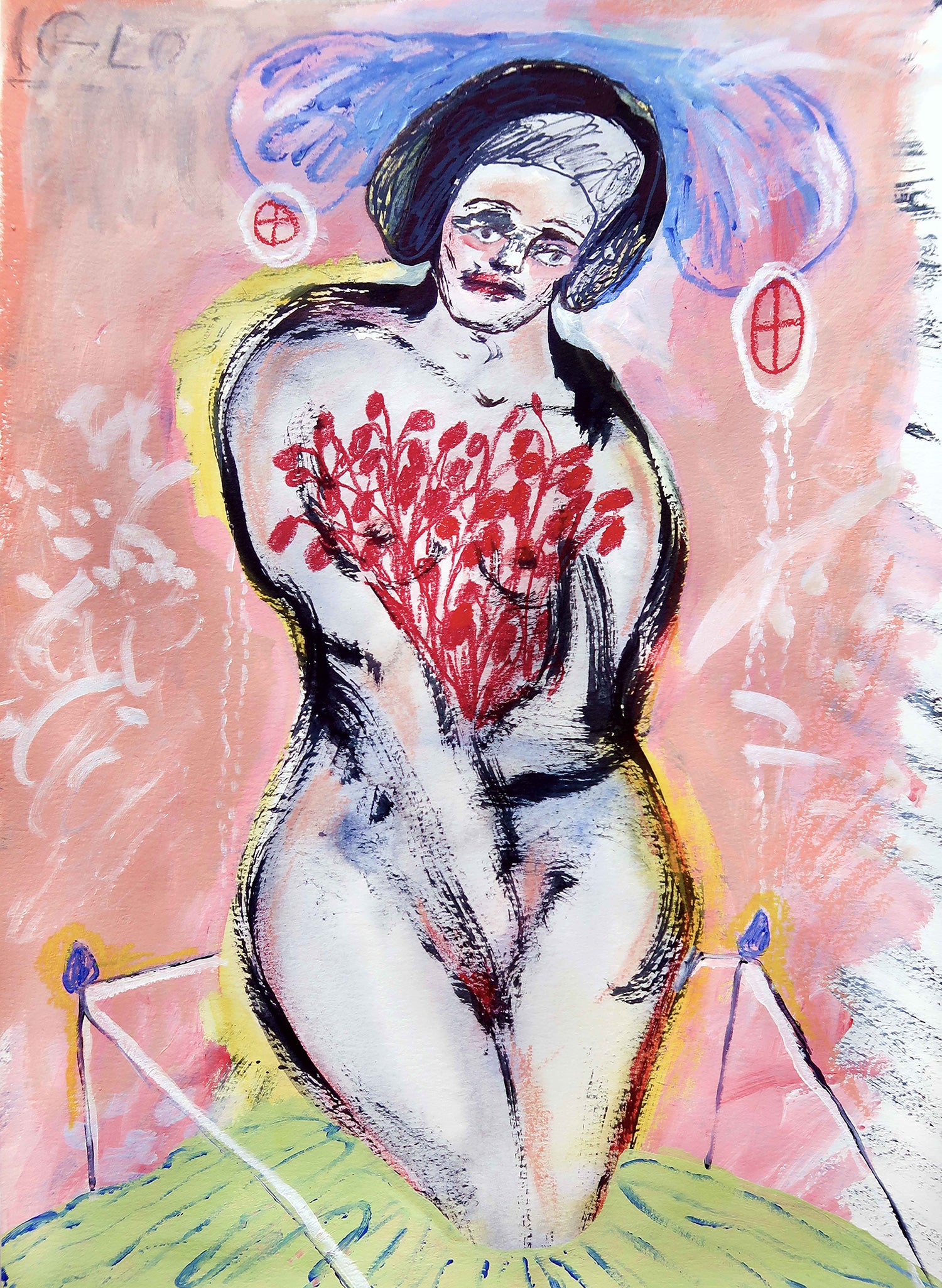 The flower imagery in my work used to symbolise fear. In making art, I often question what is good or bad within aesthetics and this pressure was personified in drawing flowers. Something associated with beauty and decoration. It was a way to display and reconcile my anxiety about making something beautiful or aesthetically acceptable. Drawing them out or incorporating them within my visual language was a way to frame the fear and face it. They’ve taken up different positions, changed in scale and form. So my relationship with this fear has also been able to shift. Not to ignore it, nor to take it too seriously, but in a way to be playful with it and allow it to teach me something.
