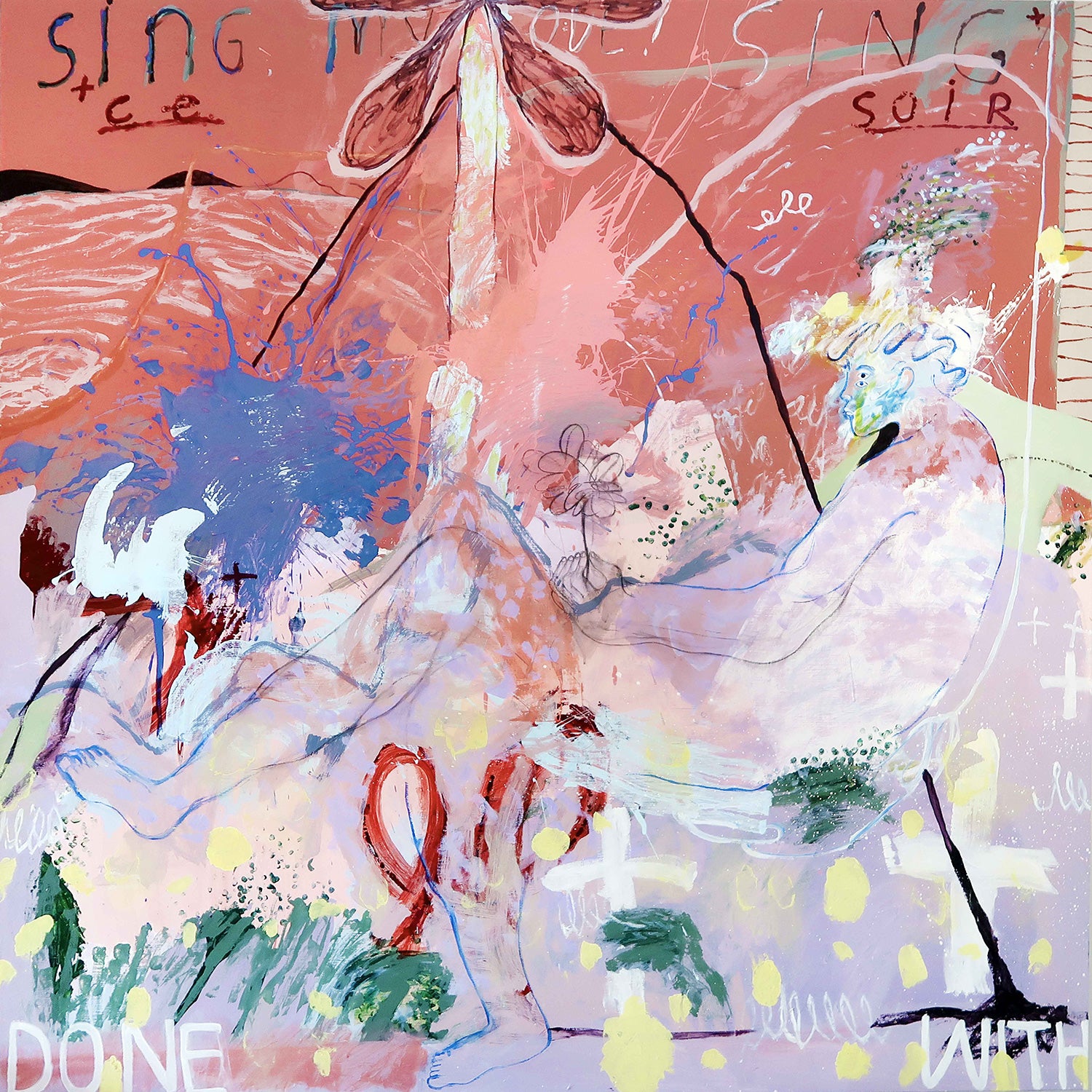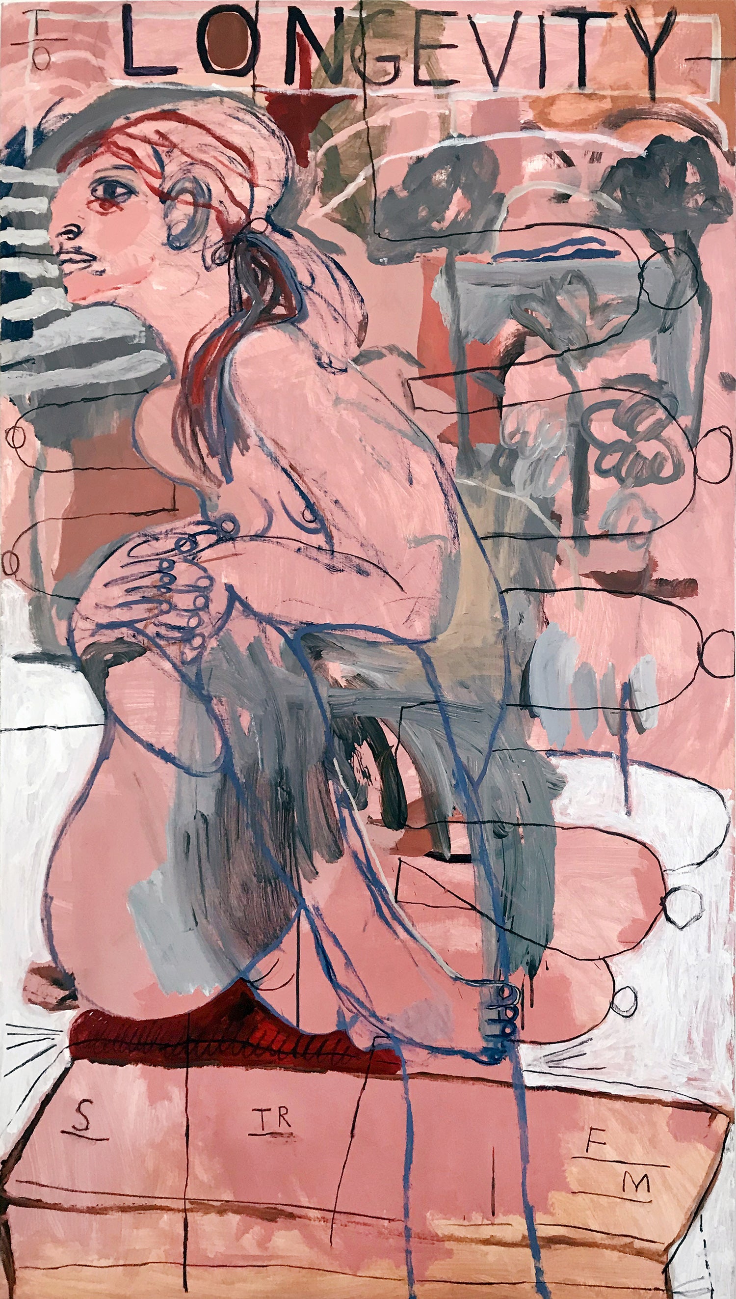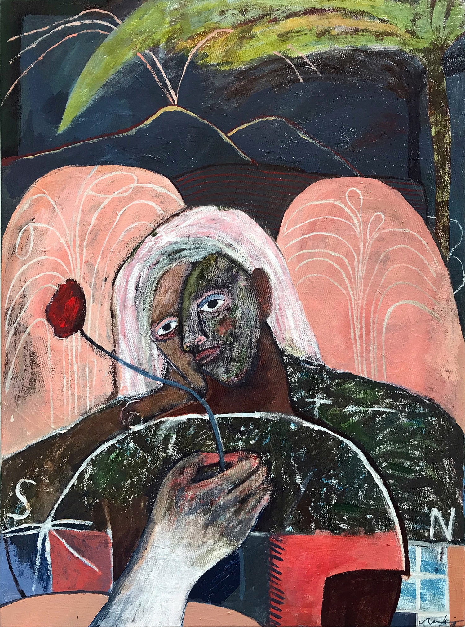 The act of writing and drawing supports a degree of urgency, impulsion and candour that to me provides a stage for truth to reveal itself. I write routinely as an act of confession and often phrases would find their way onto my canvas. It allows me to deal with themes of vulnerability and connectivity. With text, I am able to document moments, explore memories, preserve statements, or re-organize narratives. Sometimes it’s as simple as a ‘note to self ’ sentiment, other times it is to implement a sense of poetry and at times a tool to interrupt.