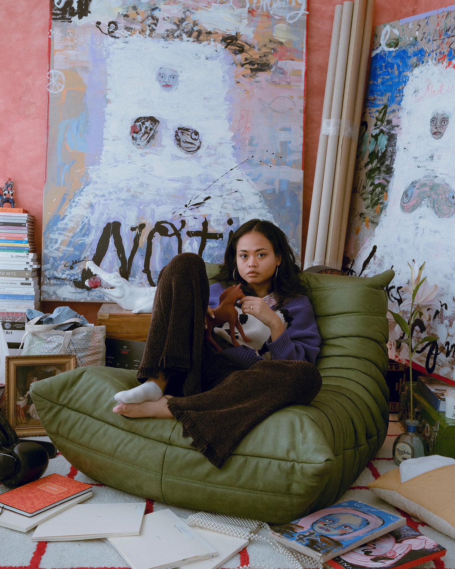 I’ve always been a creative child and I was always drawing and making things. As an only child it was how I kept busy an occupied a lot of my time. I grew up playing in my mother’s painting studio where I learned and observed a lot, my dad occasionally would take up water colour and paint cityscapes as a hobby. My grandmother wrote poetry and enjoys making things with her hands. Among my family are jewellers and designers so it wasn’t out of step to end up in the creative field. It was a path that I was never discouraged to explore and ultimately pursue. Before committing to painting full time professionally, I was freelancing in illustration, graphic design and other creative work which taught me a lot and I think sometimes still informs the way I think about aesthetics and visual language. I felt painting and art-making gave me an outlet to connect to people while exploring myself in real time. I feel very lucky that so far I’ve been able to make it a career.